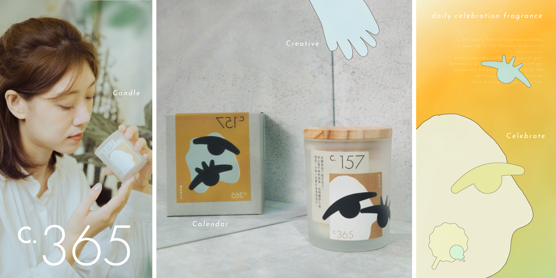 就著興致,我們燃起燭光吧,讓 C.365 變成日常的依賴,每天都是慶祝的理由。