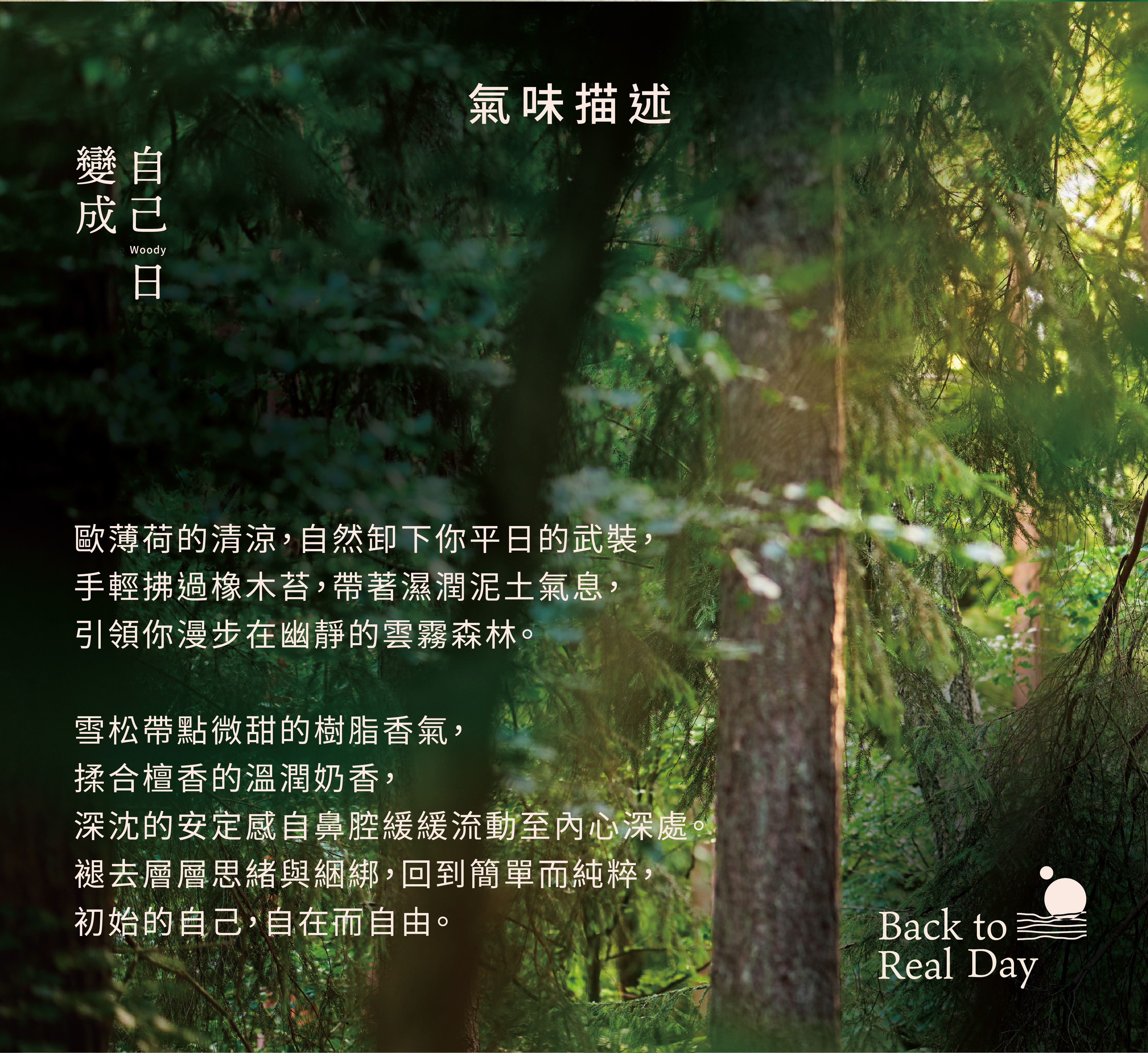 木質調:尤加利、歐薄荷、橡木苔、胡椒、雪松、香根草、檀香