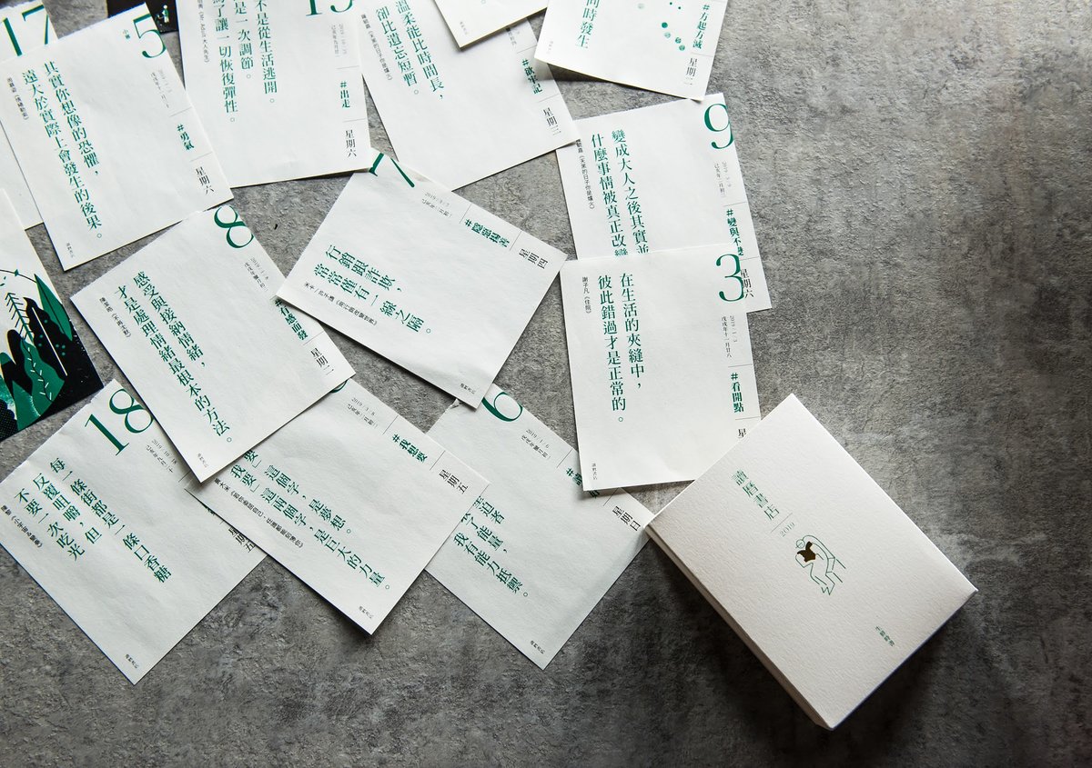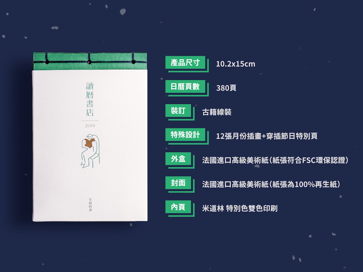 讀曆書店不是一間真實書店,而是一本內含365句台灣作家作品名句的桌曆,每天讓你相遇 1 位台灣作家,1 本書,1 則行動指南,將台灣作品融入你我生活。