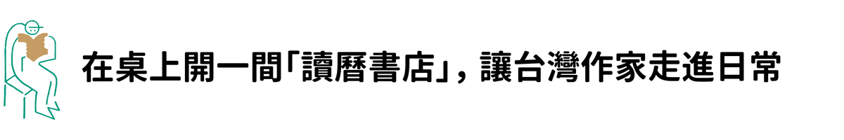 在你的桌上開一間「讀曆書店」,每天相遇 1 位台灣作家,1 本書,1 則時光指南,將台灣作品融入生活。