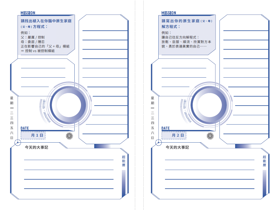 擁有正確的情緒頻率方向,才能快速到達夢想的目的地。《超能曆》就是一本情緒調頻手冊,當你覺察到自己陷入恐慌或焦慮等負面情緒時,一定要立刻停下來並馬上調頻,頻率調整好了再開始做事情。