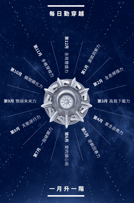 為一年365天設計了「每日升維任務」,每個月都有升維主題,如下: