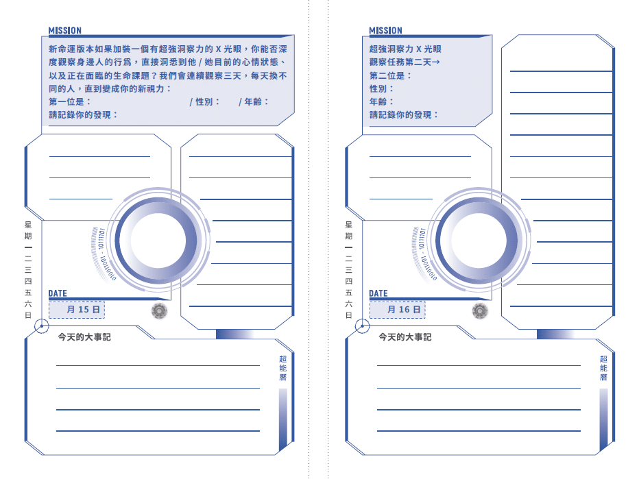 希望大家可以一起來進行《超能曆》的升維玩法,全球第一本具有升維動力的曆法,每天都有超能又落地的任務可以執行,不斷升維!