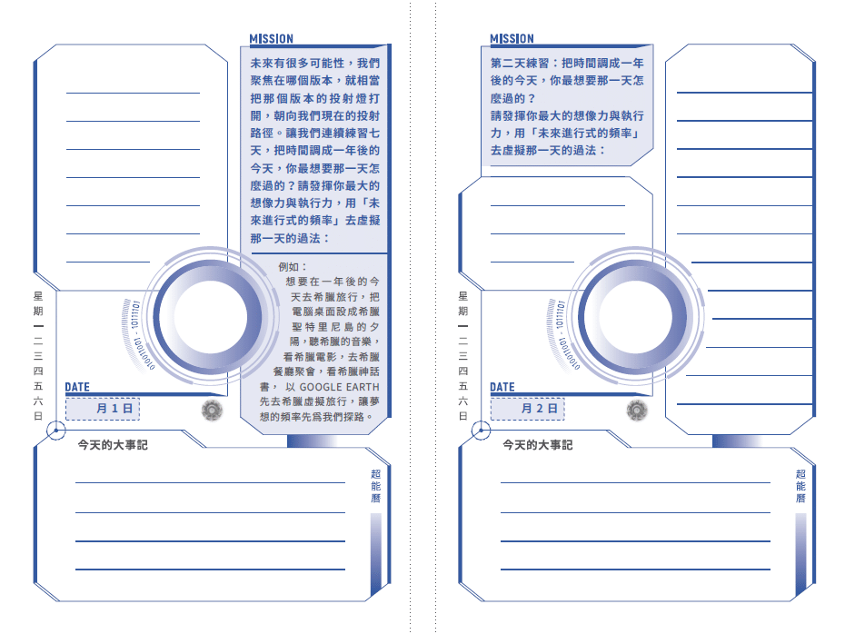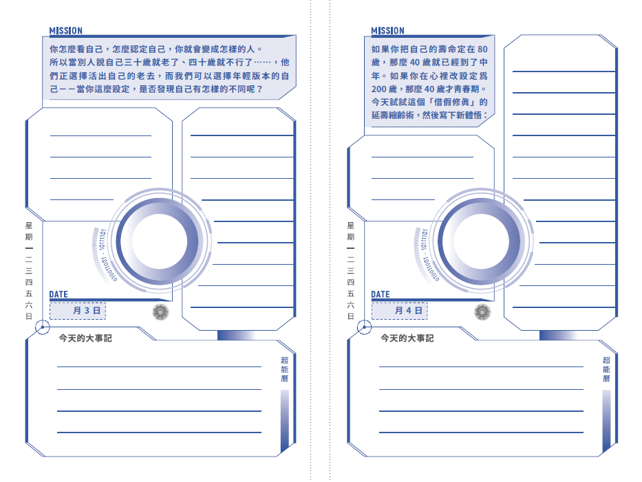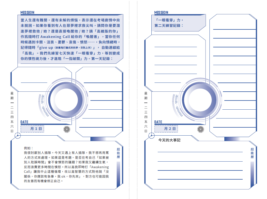 這是世界上唯一會每天盯著我們要升維的手帳,也是全球第一本具有升維進化動力的曆法——每日超能的穿越任務,決定你365天後的維度。